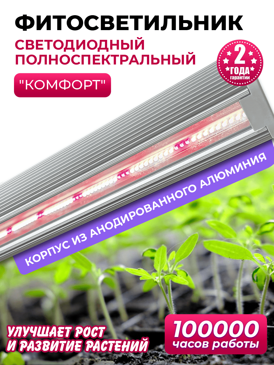 Этот Фитосветильник подойдет, как для досвечивания комнатных цветов, так для выращивания растений от рассады до получения полноценного урожая.
